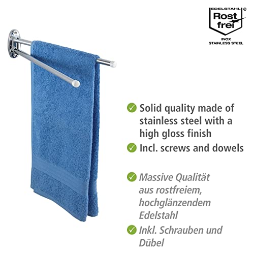 Wenko Porta Teli Basic Rotonda, 2 Bracci Arrotondati Mobili, 41 x 9,5 x 4,5 cm, Lucido