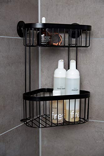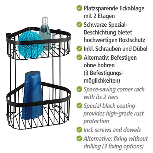 WENKO Portaoggetti angolare a 2 piani Classic Plus Black - Porta oggetti angolare, mensola angolare, qualità ad alta protezione contro la ruggine, Acciaio, 23.5 x 33 x 18.5 cm, Nero