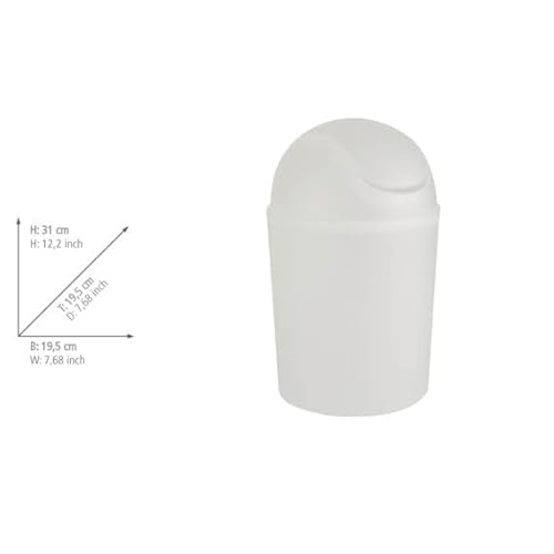 WENKO Portarifiuti con coperchio basculante Arktis bianco satinato 4,5 l Capacità: 4.5 l, Polipropilene, 19.5 x 31 x 19.5 cm, Bianco