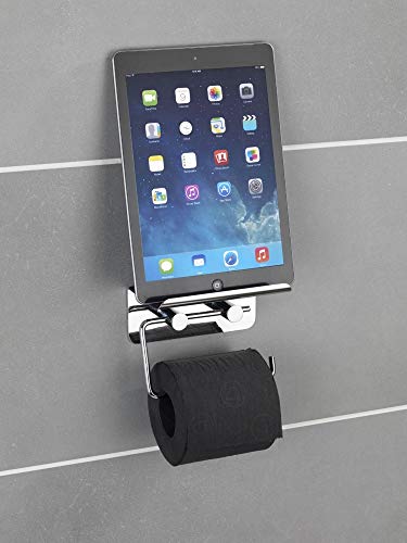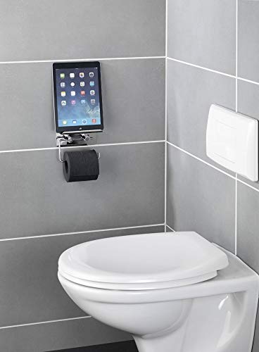 WENKO Portarotolo con porta smartphone acciaio inossidabile - fissaggio senza trapano, Acciaio inossidabile, 14 x 11.5 x 7 cm, Lucido