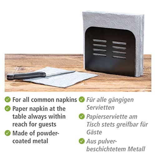 WENKO Portatovaglioli Baco, supporto per tutti i tovaglioli più comuni, ideale per tovaglioli di carta con decorazioni varie, realizzato in metallo verniciato a polvere nero, 15 x 12,5 x 4 cm
