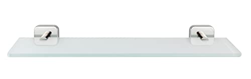 WENKO Ripiano in vetro Mezzano, mensola da parete in vetro satinato con tanto spazio per tutti gli utensili da bagno, supporto in acciaio inox lucido resistente contro la ruggine, 46,5 x 5,5 x 13,5 cm