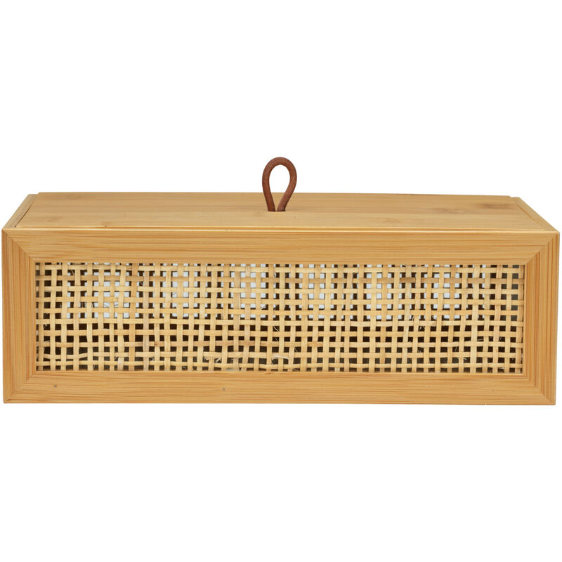 I tuoi vantaggi in un colpo d'occhio Pratica scatola portaoggetti: la Badbox Allegre L di WENKO, nel trendy stile Boho, aiuta a conservare e organizzare il bagno. È realizzata in bambù sostenibile e presenta un dettaglio in rattan che la rende un'attrazione visiva. Il coperchio si adagia sulla scatola e la chiude quasi completamente. Con una piccola passante marrone, la scatola può essere facilmente aperta. Trendy stile Boho: con decorazioni e accessori in stile Boho, sei sempre al passo con la moda. Lo stile non convenzionale permette tutto ciò che ti piace. Tuttavia, sono tipici i rattan, il bambù e altri materiali naturali e colori naturali che si abbinano perfettamente alle piante rampicanti verdi. La serie Allegre aggiunge accenti Boho amorevoli alla tua casa. Aiuto per l'organizzazione: la scatola rettangolare misura (L x A x P): 22 x 7 x 15 cm. Quindi, la scatola piatta è ideale per conservare accessori da bagno come pennelli per il trucco, accessori per la rasatura, lime per