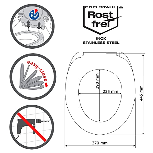 WENKO Sedile WC Bilbao Easy - chiusura ammortizzata, fissaggio igienico in acciaio inox Fix-Clip, Termoindurente, 35 x 43.5 cm, Bianco
