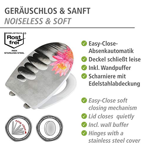 WENKO Sedile WC Water Lily, superficie strutturata, copriwater con chiusura ammortizzata automatica, in termoplastica infrangibile, 36,5 x 45 cm, multicolore