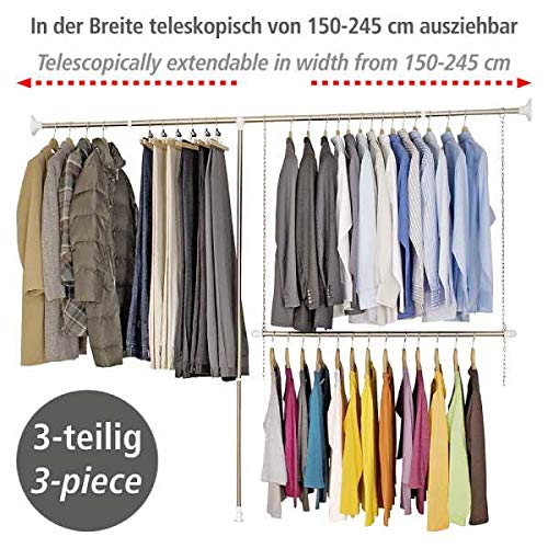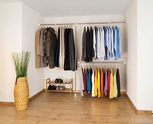 Sistema armadio flessibile composto da un'asta telescopica (Ø 3 x 150-250 cm), una ulteriore asta (Ø 3 x 122 cm), un'asta di supporto (Ø 3 x 129-202 cm)