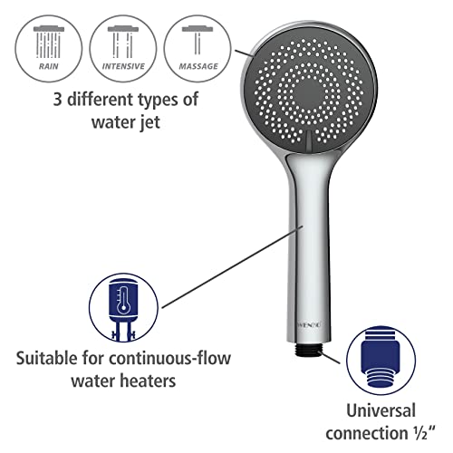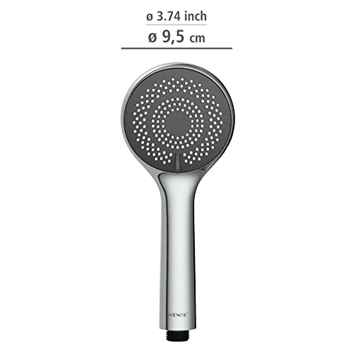 WENKO Soffione doccia risparmio acqua, Ø 9,6 cm - Doccetta universale, soffione doccia con sistema per risparmio idrico e 3 tipi di getto, ABS, 9.5 x 9.5 cm, Cromo
