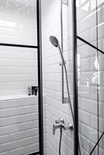 In plastica (ABS) di alta qualità, di colore cromo, diametro del soffione 9,6 cm