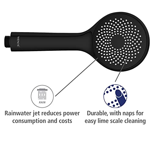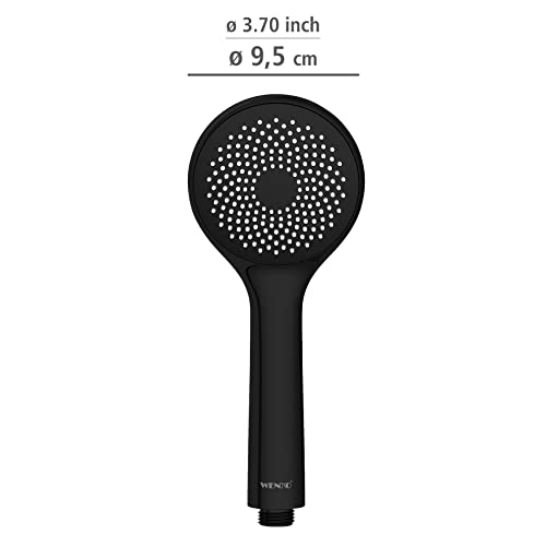 Wenko Soffione doccia Watersaving nero opaco universale doccia doccia con sistema di risparmio idrico, Nero Opaco