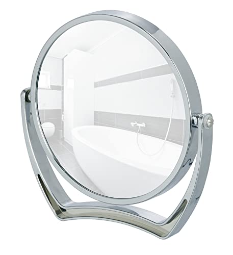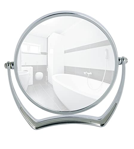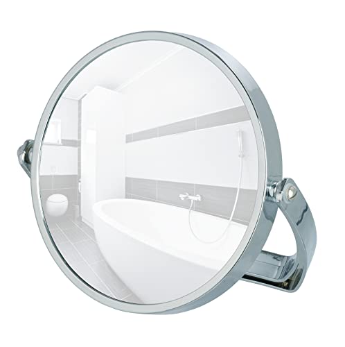 WENKO Specchio cosmetico Noale cromo - inclinabile, superficie specchiante ø 15 cm 500 % ingrandimento, Plastica, 19.5 x 19 x 2 cm, Cromo