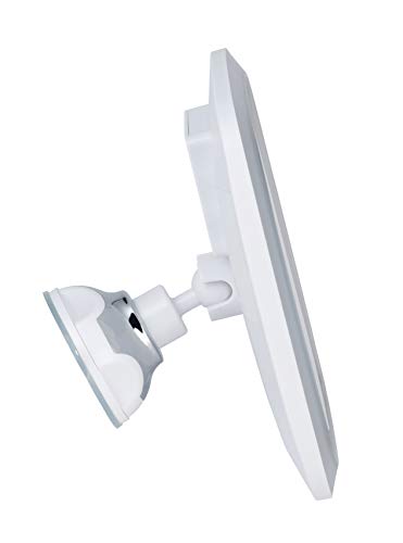 WENKO Specchio ingranditore a parete con fissaggio a ventosa e luce LED Nurri - Specchio per cosmesi con illuminazione, superficie specchiante: 14 x 17.5 cm, ABS, 17 x 20.5 x 11 cm, Bianco