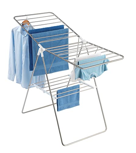 WENKO Stendibiancheria Flex - lunghezza asciugatura 15 m, Acciaio inossidabile, 145 x 90 x 60 cm, Argento opaco