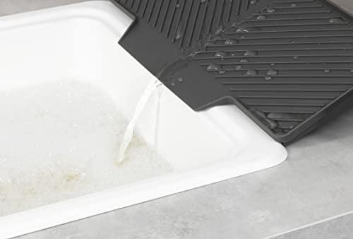 Un accessorio tuttofare intelligente: Questo accessorio grigio per la cucina non funge solo da scolapiatti. Il tappetino in gomma di qualità può essere utile anche durante la preparazione di bevande. Eventuali liquidi versati non cadono sul piano di lavoro ma direttamente nello scolo. Successivamente il tappetino di gomma può essere lavato semplicemente.