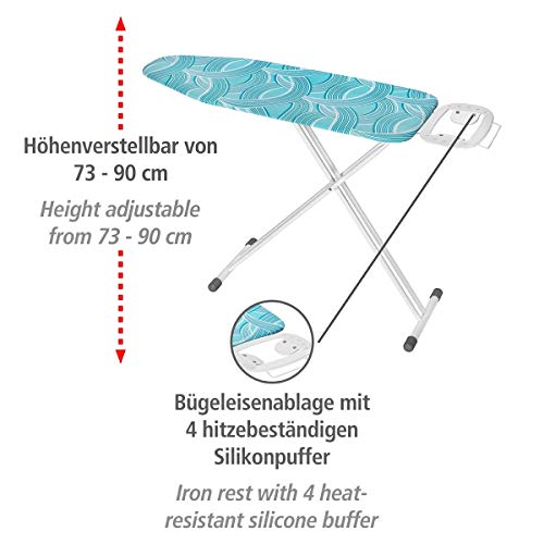Altezza di lavoro ergonomica: l'asse da stiro può essere regolata in altezza tra 73 e 95 cm mediante una leva e pertanto può essere adattata in maniera flessibile alla statura