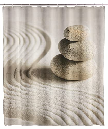 WENKO Tenda doccia Sand and Stone - fibra tessile di qualità, lavabile, Poliestere, 180 x 200 cm, Multicolore