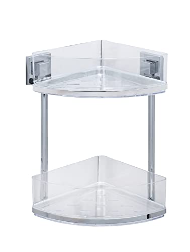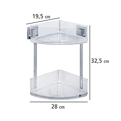 WENKO Vacuum-Loc portaoggetti angolare a 2 piani in acciaio inox Quadro, Acciaio inossidabile, 28 x 32.5 x 19.5 cm, Lucido
