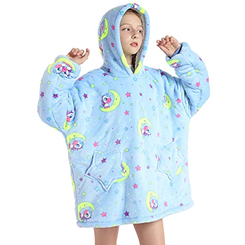 Wenlia Felpa con Cappuccio Oversize per Bambini e Ragazza, Cute Felpa con Coperta in Sherpa indossabile Morbida Unicorno Pullover con Tasca Sweatshirt con Ampia Tasca Frontale, Taglia Unica
