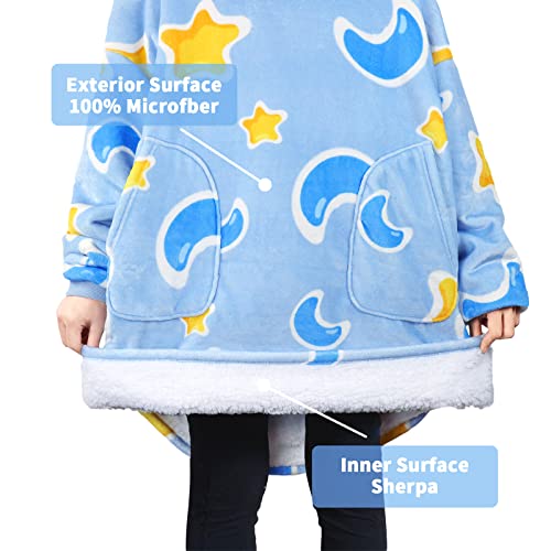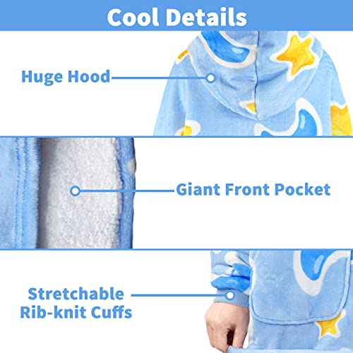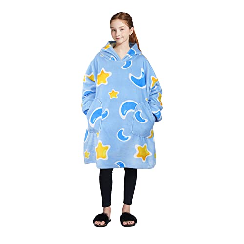 Wenlia Felpa con Cappuccio Oversize in Sherpa per Bambini e Ragazza, Cute Felpa con Coperta indossabile Morbida Felpa con Cappuccio indossabile con Ampia Tasca Frontale, Taglia Unica (Étoiles et lune)