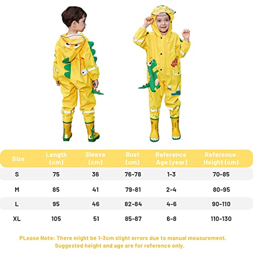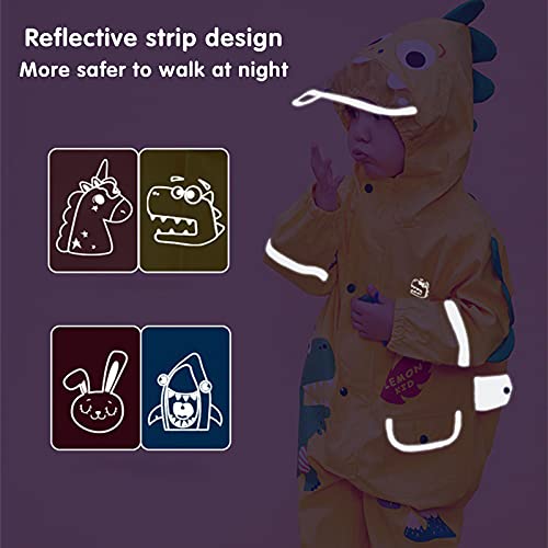 Wenlia Impermeabile per bambini 3D Cartoon Dinosaur Rainsuit All in One Impermeabile Giacca antipioggia Bottone con cappuccio Poncho Antipioggia Ragazzi Ragazze Giochi all'aperto Viaggi Età 1-8 anni