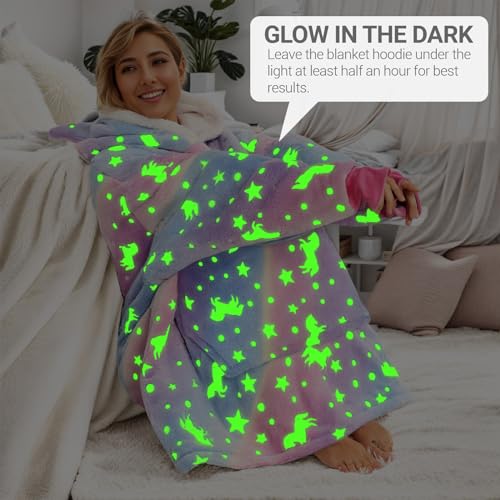 Wenlia Oversize Coperta Felpa con Cappuccio per Donna, Coperta Sherpa Indossabile Coperta Invernale Calda e Accogliente per TV, Unicorno Coperta di flanella, Taglia unica, Ideal regalo per ragazze