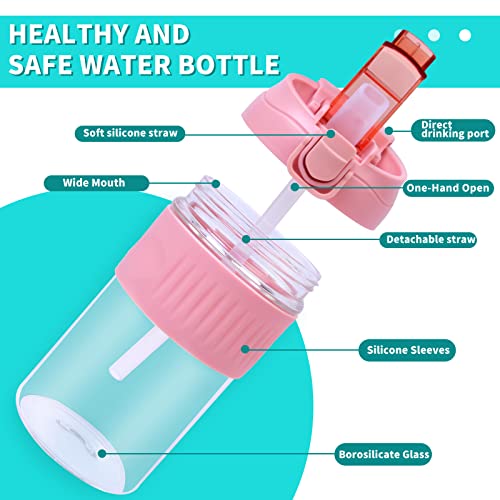 WENLIM Borraccia in Vetro con Cannuccia 550ml, Bottiglia di Acqua in Vetro Borosilicato con Custodia in Silicone 0.55L, Senza BPA