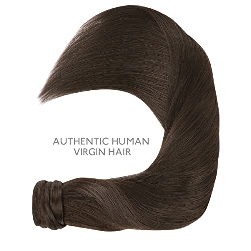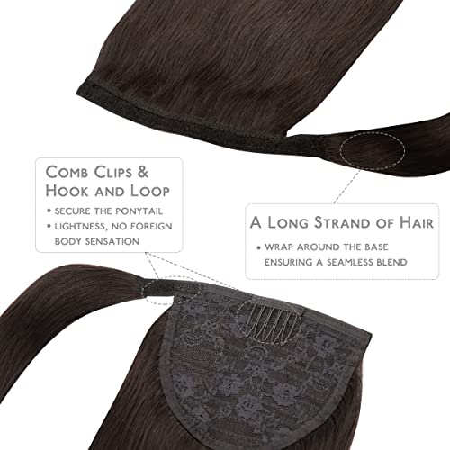 WENNALIFE Coda Capelli Extension Veri, 45cm 18 Pollici 80g Marrone Scuro Coda di Cavallo Capelli Veri Naturali Umani Ponytail Extension Coda Capelli Veri Clip in Wrap Around Extension Capelli Veri