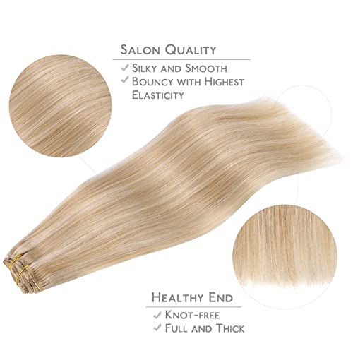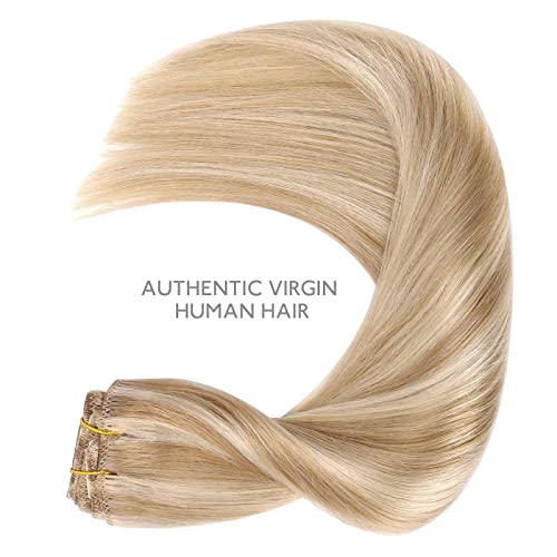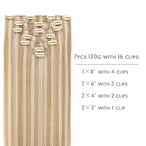 WENNALIFE Extension Capelli Veri Clip, 60cm 120g 7pcs Extension Clip Capelli Veri Biondo Sporco Illuminato Biondo Candido Remy Umani Naturali Capelli Extension con Clip