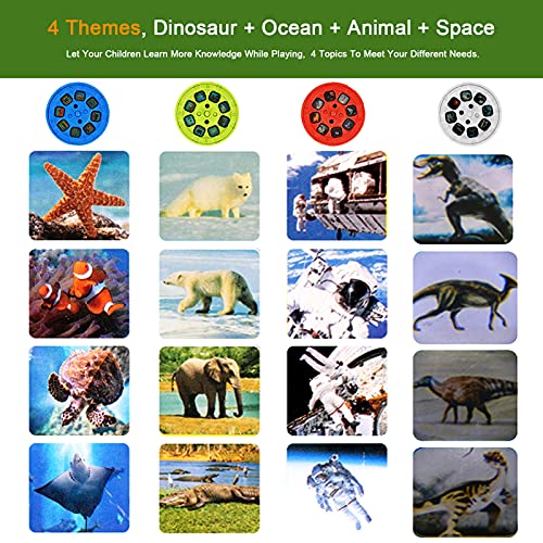 Wenosda Proiettore di Diapositive Torcia Elettrica Lampada da Proiezione Lampada Giocattolo Torce Lampada Torcia Luce Notturna per Bambini Piccoli (Dinosauri + Mare + Animali + Spazio)