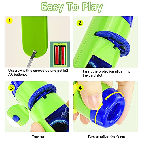 【Giocattoli divertenti per l'apprendimento precoce】: Fai conoscere ai bambini il buon senso ottico. L'obiettivo può essere messo a fuoco e le immagini proiettate a diverse distanze appariranno diverse, il che è sorprendente! Imparando giocando, imparando dinosauri e animali marini, piaceranno ai bambini. E anche stimolare la curiosità e l'immaginazione del bambino.