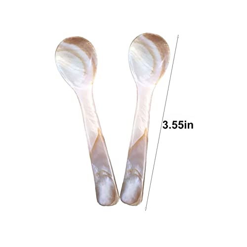 Wenplus Confezione da 2 cucchiai da caviale da 9 cm, in madreperla, con manico rotondo, con una scatola di plastica, colore caffè, stile C