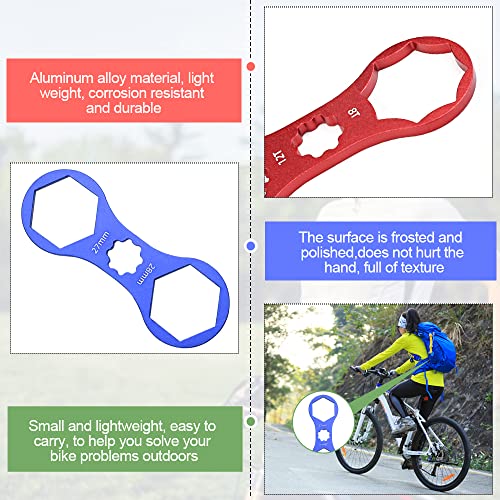 【4 Chiave per forcella anteriore】 Il set include 4 chiavi a bussola per forcella per bici, i colori sono rosso e blu, tipo A (8T-12T): 99 * 35 * 4 mm, tipo B (27-28 mm): 101 * 38 * 4 mm, adatto per bici normali, mountain bike, bici da strada, ecc.