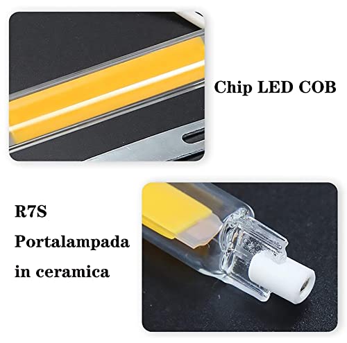 【r7s led 78mm 10w】Lampadina a ad alta luminosità r7s led 78mm dimmerabile doppio COB LED 1000LM, Bianco Naturale 4000-4500K, angolo di diffusione della luce di 360 gradi, portalampada in ceramica a basso calore, struttura di connessione antideflagrante, chip COB LED di alta qualità, un'elevata resa cromatica (CRI> 85)