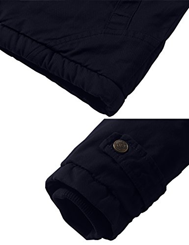 WenVen Cappotto Militare Invernale Caldo Parka con Cappuccio Staccabile Antivento Giacca Media Lunga in Pile Giubbotto da Lavoro Classico Uomo Blu Scuro S