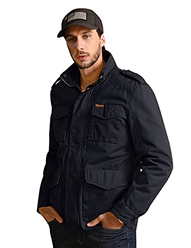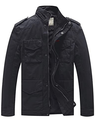 WenVen Giacca Casual in Cotone Giacca con Zip Antivento Giacca Tempo Libero Outddor Giaccone Taglia Forti Uomo Grigio Scuro S