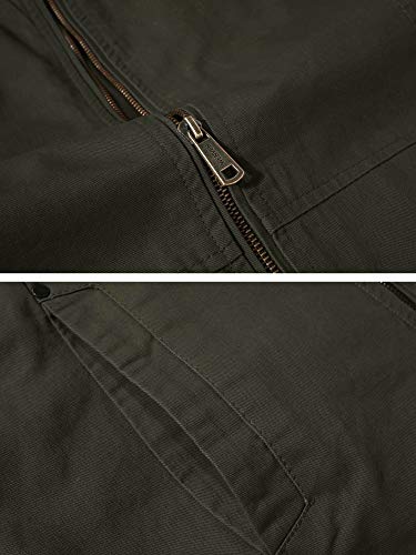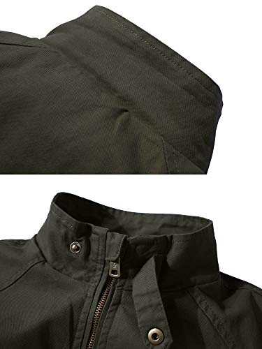 WenVen Giacca Militare Antivento in Cotone Giubbotto Casual con Zip Cappotto Leggero Mezza Stagione Giaccone Tempo Libero Uomo Verde Militare L