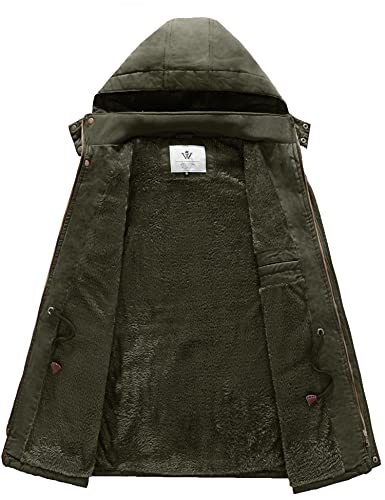 WenVen Giacca Militare Invernale Calda Cappotto Casual Medio Lungo Parka con Cappuccio Staccabile Giubbotto da Lavoro Esterno Imbottito Uomo