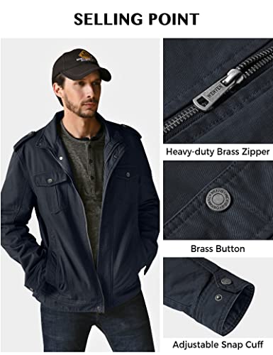 WenVen Giacca Tempo Libero Outddor Giubbotto Classico Cargo Giubbotto Multi Tasche Cappotto da Lavoro Primavera Uomo Blu Scuro S