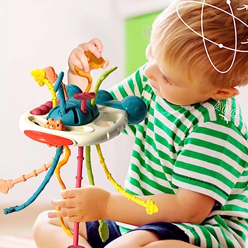 Wenxiaw Montessori Toys Gioco Tirare la Corda Educativo Baby Sensory Toys per i più Piccoli Razzo Food Grade Silicone Tirare Stringa attività Giocattolo da Viaggio Giocattoli per i più Piccoli
