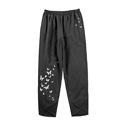 Wenyujh Pantaloni in lino, 7/8, estivi, con stampa a vita alta, pantaloni da yoga, con gamba larga, per il tempo libero, con tasche, casual, D-nero., XXL