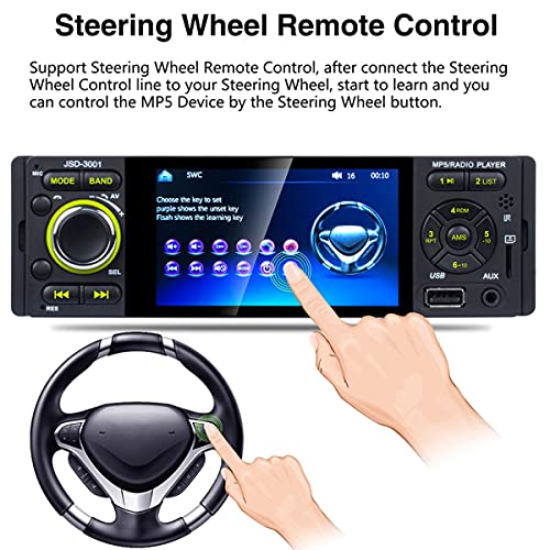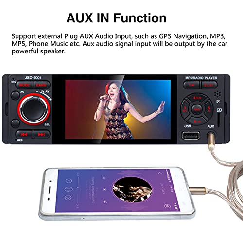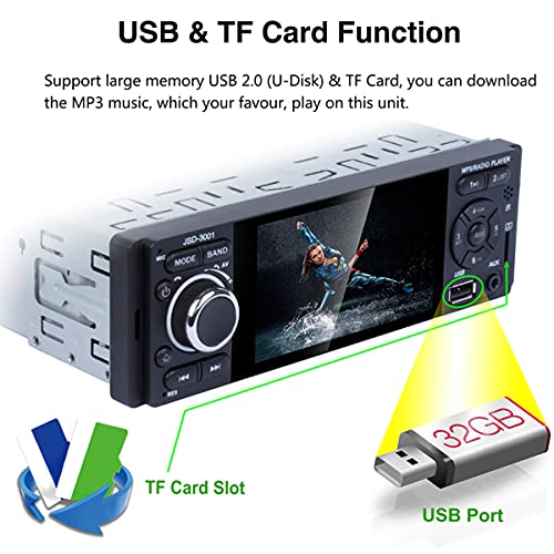 Numerose funzioni: l'autoradio supporta 4 modalità per riprodurre musica: Bluetooth, USB, AUX, scheda SD. L'interfaccia di ingresso audio AUX può aggiungere MP3, telefoni cellulari, lettori musicali e altri ingressi audio. Supporta l'ingresso USB e carica i tuoi telefoni cellulari. Altrimenti questa autoradio supporta la pausa/anteprima/ripetizione/riproduzione casuale e 10 tracce su/giù selezioni.