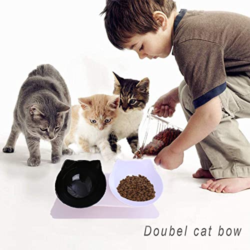 Weploda 2 Pezzi 15° Inclinata Doppio Gatto Ciotola con Supporto Rialzato, Ciotola per Gatti Anti Vomito con Supporto, Ciotola Antiscivolo in Bianco e Nero per Cibo e Acqua per Gatti e Cuccioli