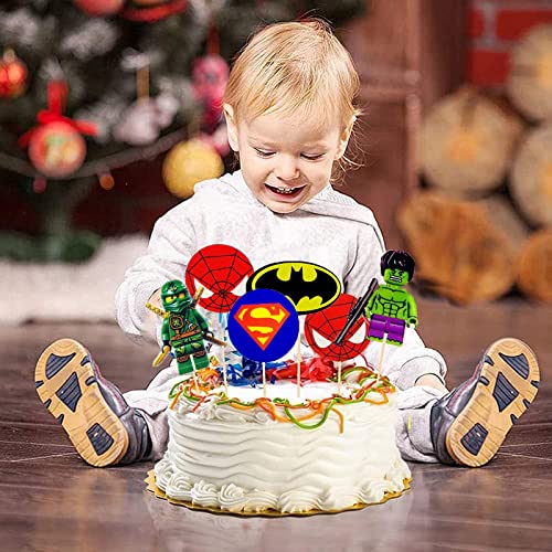 Weploda 120 Pezzi Supereroe Cupcake Decorazioni, Cupcake Topper Cartone Animato, 5 Diverse Figure a Tema, Perfette per Feste di Compleanno per Bambini e Feste a Tema Eroe