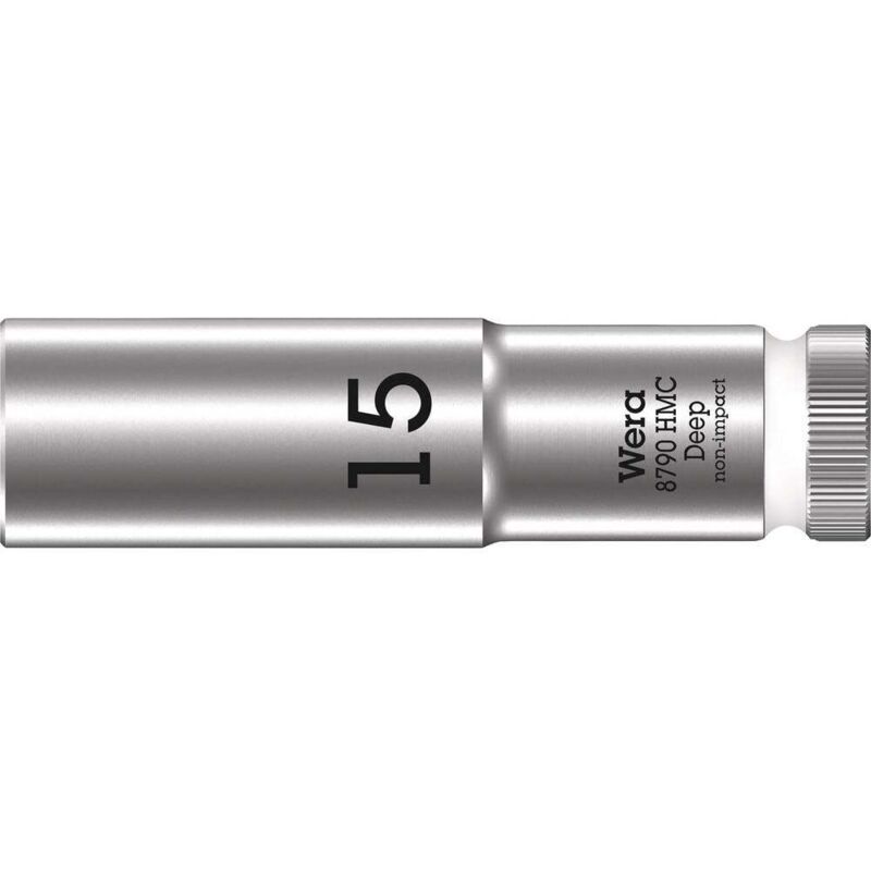 Dettagli tecnici Dimensione chiave (metrica) 15 mm Dimensione del prodotto, lunghezza 83 mm Impronta (cacciavite) 1/2 Tipo prodotto Inserto a bussola 8790 HMC Deep inserto per chiavi a bussola con azionamento da 1/2 ½ più a mano e macchina inserto per chiavi a bussola (ISO 2725-parte 3) con sfera scanalatura di cattura, per viti e dadi. Per l'uso in mano o macchina (non-impact) anche in caso di profondità raccordi a vite e aste filettate. sporgente Con trova-utensili Take it Easy con codifica a colori in base alle dimensioni: per trovare in modo semplice e rapido l'utensile desiderato. Antiscivolo per una facile anche con le mani unte. Il Profilo esagonale consente la trasmissione di forze maggiori e al massimo i bordi del dado o della testa della vite è meno di un profilo Dodecagonali. Cricchetto con dentatura fine rendono inoltre il piccolo angolo di ritorno l'utilizzo di un profilo dodecagonali anche in spazi ristretti. Testo tradotto automaticamente. Caratteristiche Lunghi per