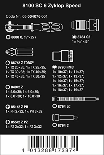 Wera, 8100 SC 6 Kit con cricchetto Zyklop Speed, attaco da 1/2", metrico, 28 pezzi