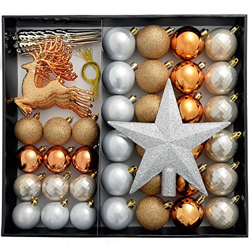 WeRChristmas - Confezione da 50 palline e topper contiene una selezione di stili che includono glitter, perlato, vortice e zucca