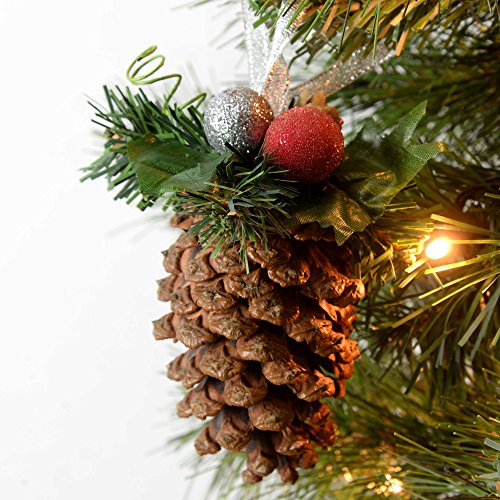 grande Pinecone decorata con bacche, piccoli coni, nastri e festive Albero punte