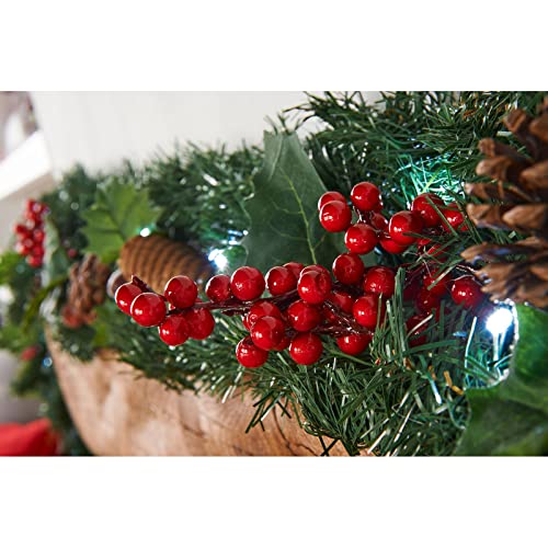 WeRChristmas - Ghirlanda natalizia decorativa, con pigne e bacche, illuminata da 40 LED, luce bianca, lunghezza: 2,7 m