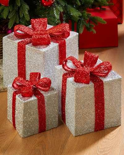 Le scatole sono illuminate da 35 LED a luce calda bianca e faranno un grande effetto sotto l'albero con gli altri pacchetti regalo.
