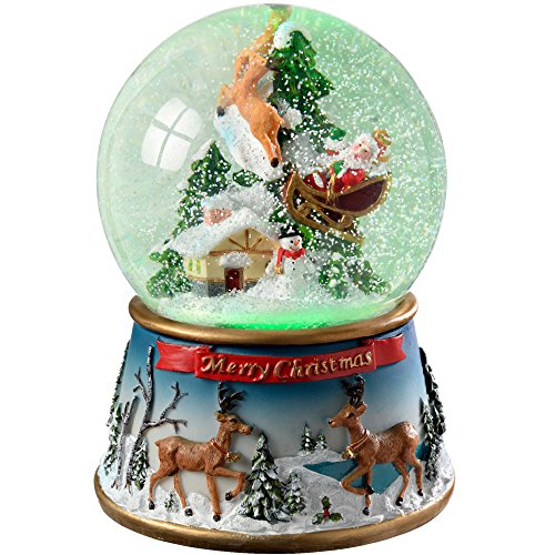 WeRChristmas, Palla di Vetro con la Neve, Babbo Natale e Slitta, Altezza 19,5 cm, Luce Interna Multicolore