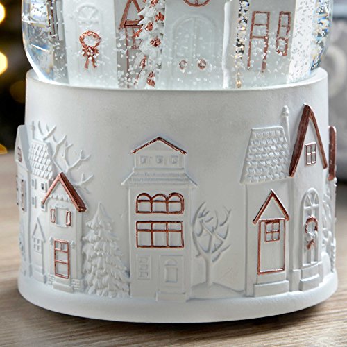 WeRChristmas, Palla di Vetro con Neve Carillon con Case e Chiesa, Decorazione Natalizia, 17 cm, Colore: Bianco